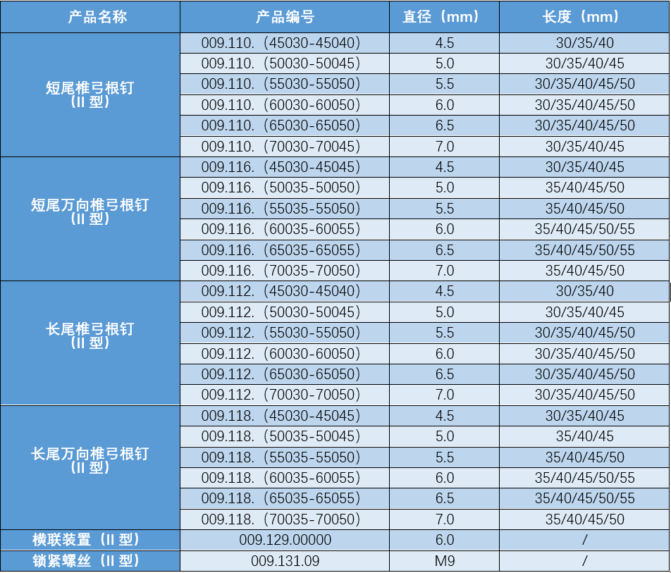 胸腰椎钉棒内固定系统由椎弓根钉、长尾椎弓根钉、短尾椎弓根钉、微创万向椎弓根钉、棒、横连装置、 锁紧螺帽、固定块和金属钩等组成。适用于脊柱胸腰椎骨折、滑脱、退行性变、畸形、椎间盘突出、椎管狭窄等内固定。